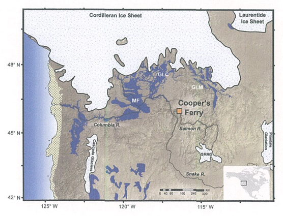 米科学誌「サイエンス」8月30日最新号によると、北米大陸に初めて移住したとみられる後期旧石器時代の人々が居住した米アイダホ州西部にあるコロンビア川沿いクーパーズフェリー遺跡(地図)で国際考古学調査チームが発掘調査した結果、これまでの定説を覆し最初の移住が氷床が融けて陸の回廊地帯が現れる以前の1万6000年ほど前に遡ることが判明した。